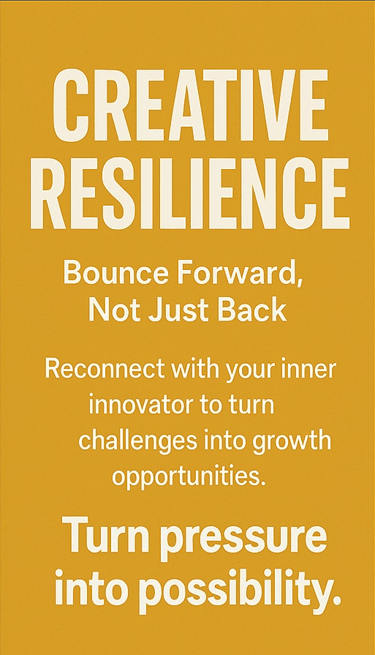A: Instead of being sidelined by setbacks, Creative Resilience helps you see challenges as stepping stones. It trains you to shift from “Why me?” to “What’s possible now?” — turning pressure into possibility.